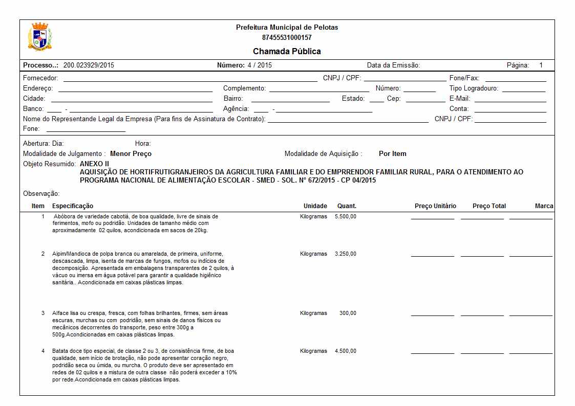 Aquisição de hortifrutigranjeiros da agricultura familiar e do empreendedor familiar rural