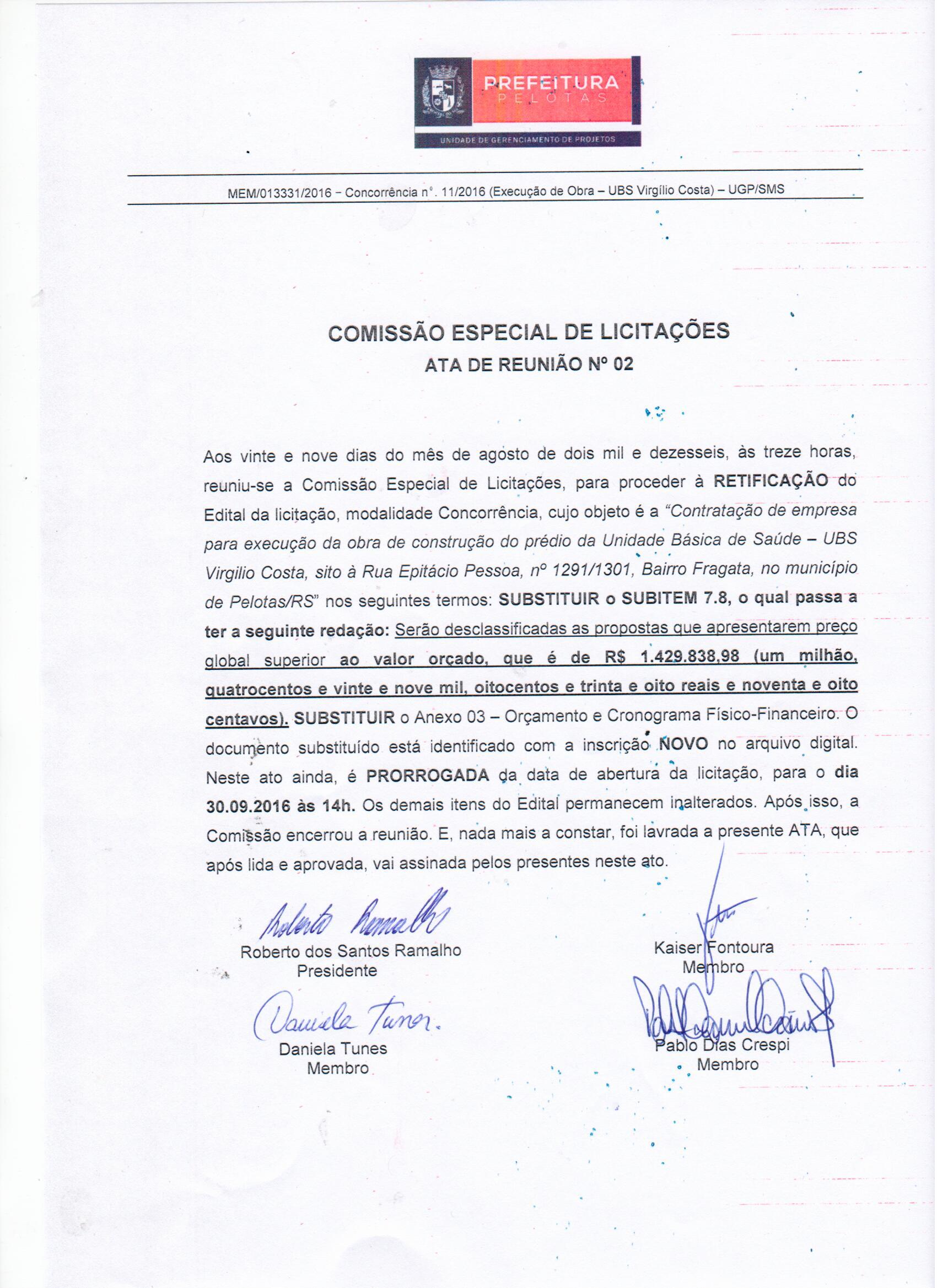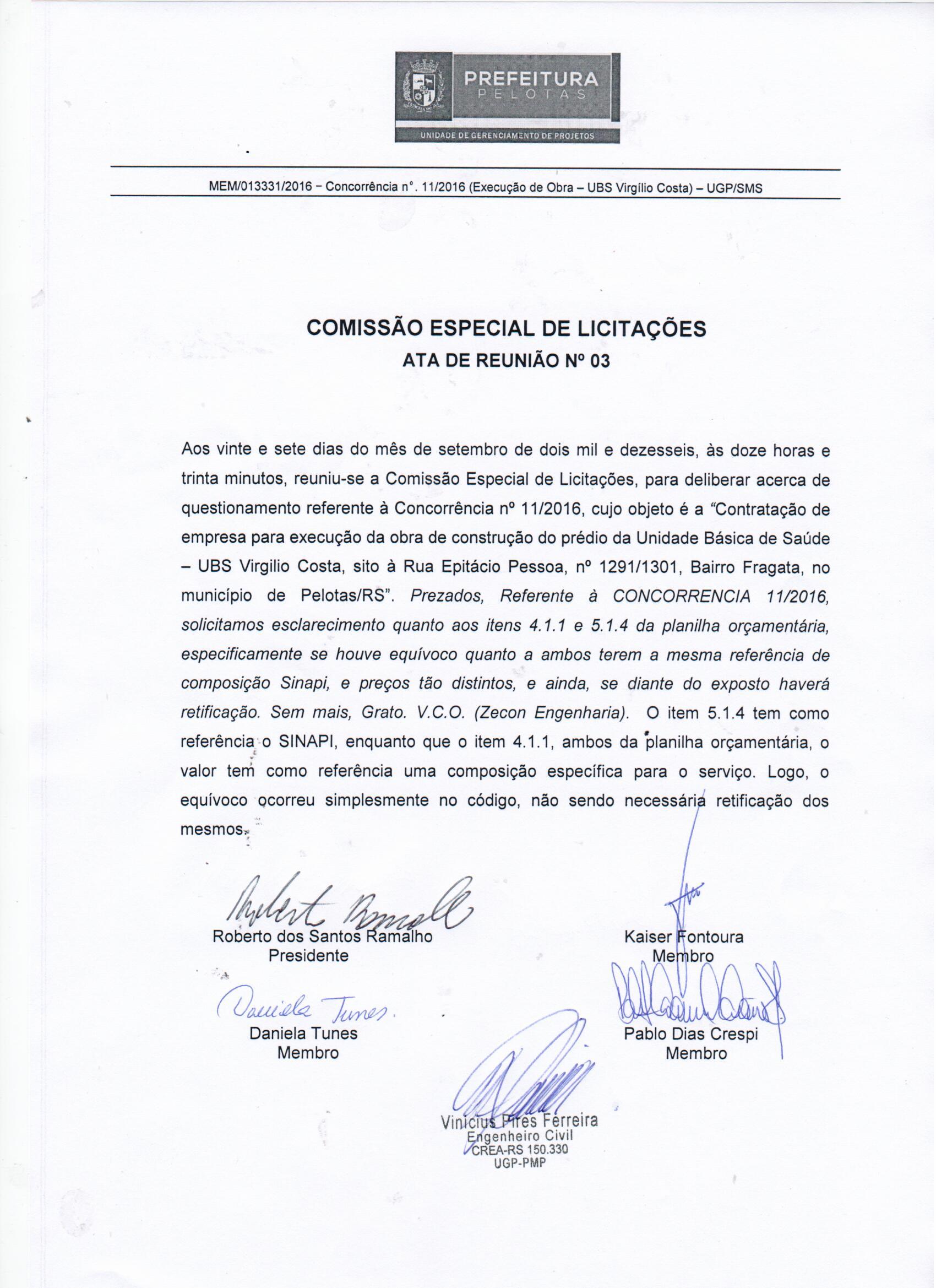CONCORRÊNCIA 11/2016 - UGP/SMS