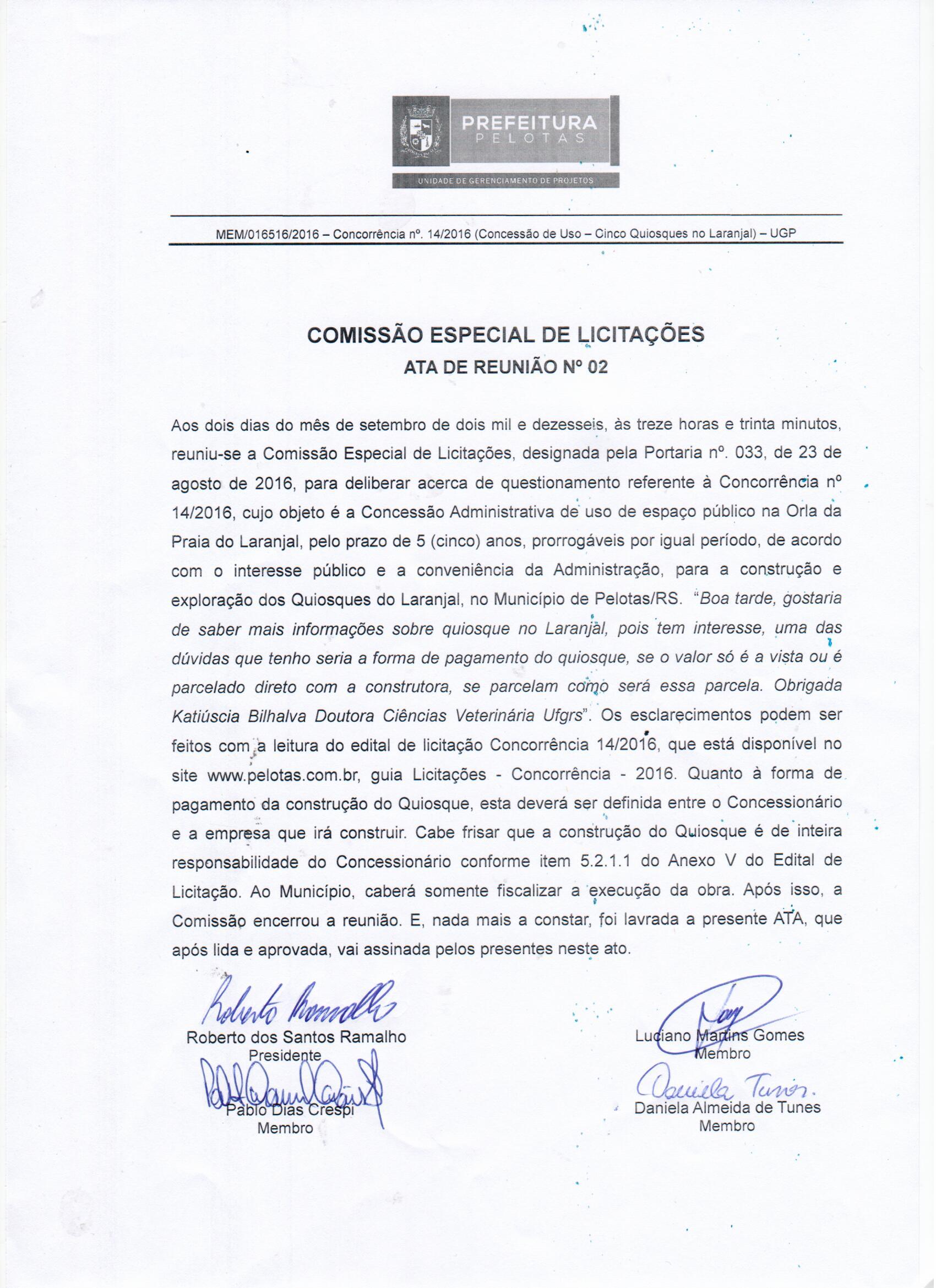 Concessão Administrativa de uso de espaço público, por 5 (cinco) anos, prorrogáveis por igual período, de acordo com o interesse público e a conveniência da Administração, para a construção e exploração de Quiosques na Orla da Praia do Laranjal